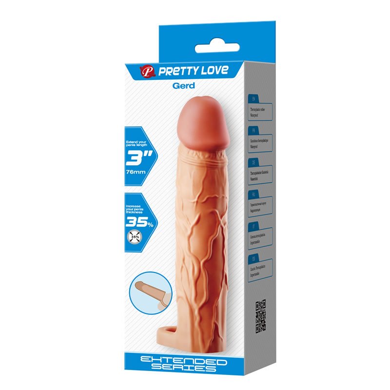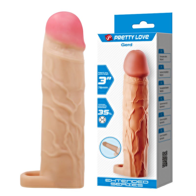 Lleva el placer de tu pareja al siguiente nivel con esta funda para pene que aumenta la longitud y el grosor. Ofrece 3 pulgada extra de longitud y un incremento en el diámetro, mientras que su material de textura realista y detalles naturales crean una sensación de llenado auténtico. Diseñada para ajustarse cómodamente al pene del usuario, mejora el control y ayuda a retrasar la eyaculación. Su canal interno suave garantiza una experiencia cómoda y placentera. No olvides aplicar lubricante a base de agua tanto en el interior como en el exterior antes de usarla.