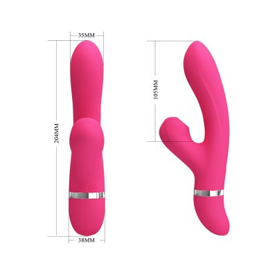 ¿Deseas poder recrear esa increíble sensación de recibir sexo oral mientras disfrutas de la penetración? Tus plegarias tienen respuesta con el vibrador de conejito que da golpecitos en el clítoris de Pretty Love. Este exclusivo conejo tiene un toque moderno, con un estimulador de clítoris que da golpecitos y un potente masajeador vibratorio del punto G para el orgasmo alucinante de tus fantasías. Aprieta el botón para activar 7 modos increíbles. El estimulador externo succiona tu clítoris mientras te llenas de silicona sedosa con una punta curva para despertar tu punto G. Los orgasmos combinados son muy fáciles con este conejito succionador.